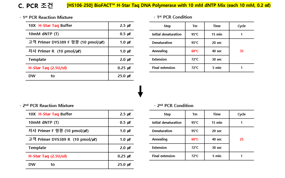 ![]() ![]() ![]() ![]() ![]() #Genotyping#지노타이핑#분자마커#염기서열#유전자형#유전형#genotype#enzyme#PCR#분자진단#생명과학#생명공학#실험#바이오팩트#sequence#GD141-100#HS106-250#Genescan#size#SSR#MS#STR#SingleNucleotidePolymerphism#GenomicDNA |