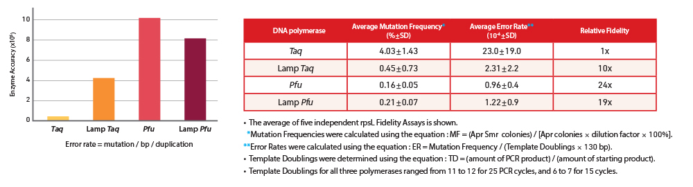• 12-fold higher PCR fidelity over Taq DNA Polymerases